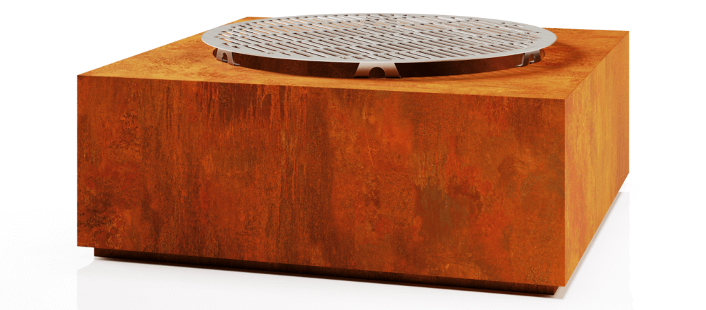 This high-quality, handcrafted Corten steel fireplace complements a variety of outdoor décors in both winter and summer and will serve for many years. Its design prevents embers from spreading, while the high-quality metal grates at the bottom ensure easy cleaning and optimal air circulation. The top surface allows for the placement of stainless steel grilling grates, transforming it into a barbecue. Additionally, with an innovative cover, the fireplace can also function as a table for family and friends’ gatherings. This fire pit will become a decorative and charming feature of your yard while keeping you warm on chilly evenings.