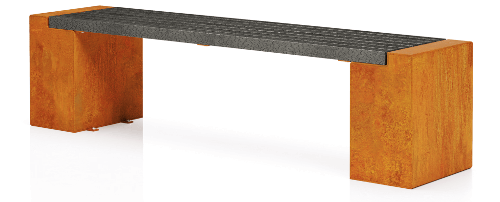 The bench can be made not only from Corten steel but also from galvanized steel, which can be painted in any desired RAL color upon request.