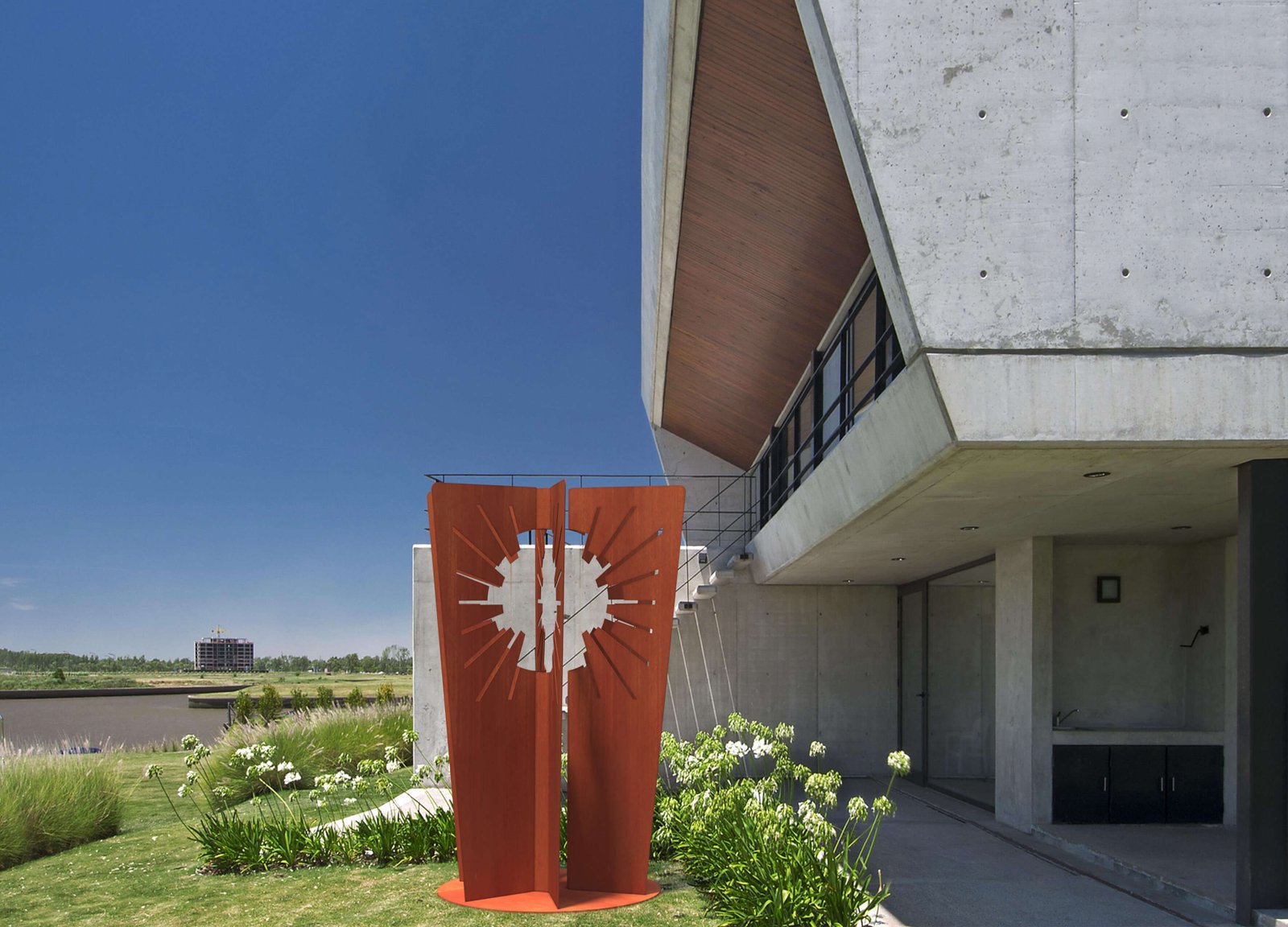 It’s wonderful to have your own sun in the yard, especially when rain clouds might block the real one for a long time. In your yard, every day will be bathed in warming sunlight. The steel absorbs the sun’s warmth and gradually releases it even after the sun has set beyond the horizon. The sunlit color of the sculpture and its spatial cuts enhance the realism of the rays. The play of shadows and the harmony of colors with the surrounding environment create a mesmerizing sight. It invites you to walk around in a circle, observing how the environment assembles itself from separate pieces, appearing different from every angle.