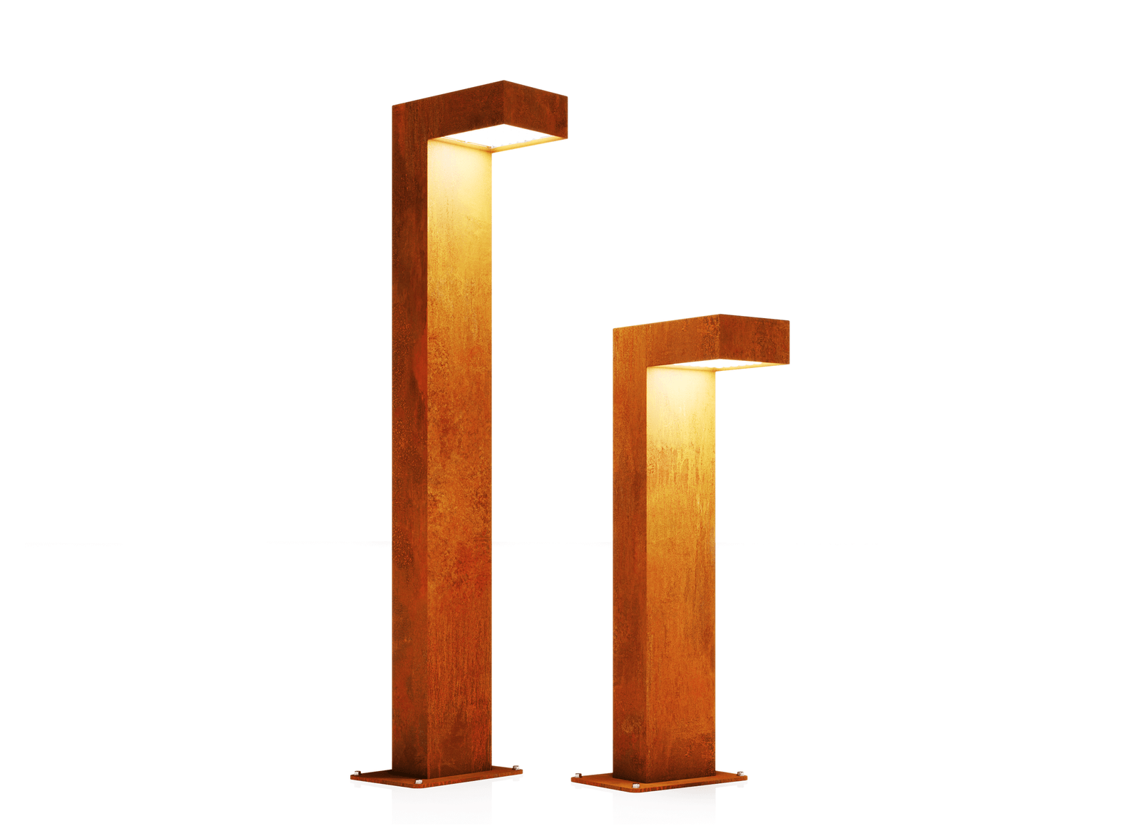 The visually massive, modern Corten steel luminaire – ELIS. Minimalist yet playful, simple yet striking, featuring geometric shapes, a timeless design, and exceptional quality. The Elis luminaire can be widely used to illuminate pathways, driveways, terraces, or other outdoor spaces.