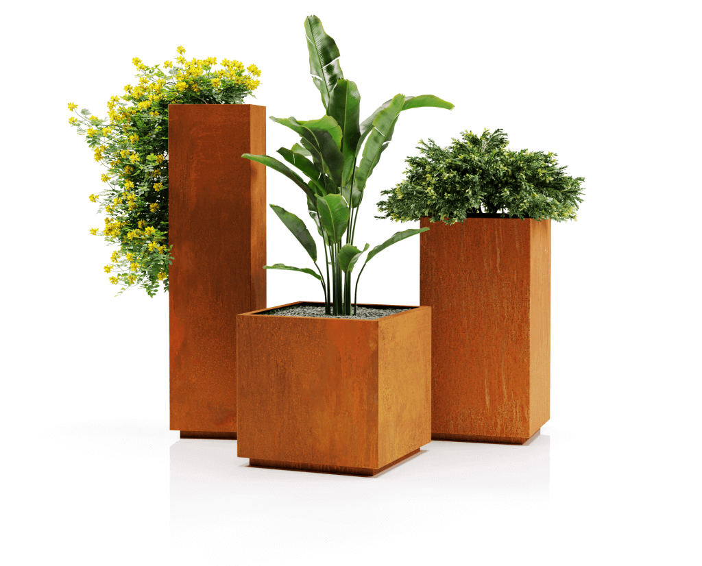 The square planter is a classic Corten steel planter, perfect for both large and small plants. Its square shape makes it even more versatile and easier to integrate into your landscaping solutions!